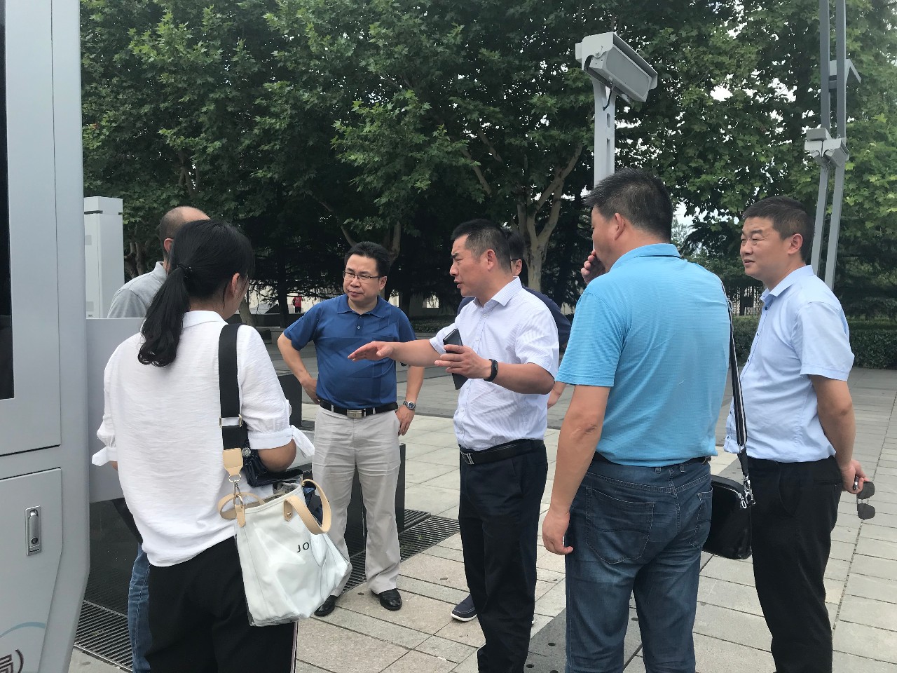 ◆2018年6月23日,銅陵市銅官區(qū)區(qū)委常委楊友進、區(qū)政府副區(qū)長巫永生、國家獅子山高新區(qū)黨工委書記王基宏、區(qū)委宣傳部常務副部長高鵬、區(qū)招商局長余建國、區(qū)商務局長查日春等一行前往蘇州高新區(qū)馨泰花苑智慧廣場舞示范點,就智慧體育便民設施進行考察。