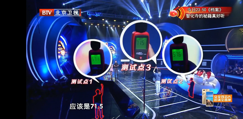 據(jù)悉,該音響聲音傳播具有方向性,正前方30°夾角音區(qū)聲音清晰,兩側(cè)音量遞減,嚴(yán)格控制聲音傳播范圍以達(dá)到不擾民的目的。為保證現(xiàn)場(chǎng)測(cè)試數(shù)據(jù)的準(zhǔn)確性,工作人員以音響為原點(diǎn),用線拉出30°夾角,分別在夾角內(nèi)以及夾角兩側(cè)測(cè)試分貝。最終得出的結(jié)果是,夾角內(nèi)的分貝比兩側(cè)高出約14分貝,相當(dāng)于能量級(jí)翻了4倍多。按這個(gè)數(shù)值來(lái)看,使用專業(yè)不擾民廣場(chǎng)舞音響能夠滿足廣場(chǎng)舞運(yùn)動(dòng)者要求的同時(shí),不干擾周邊居民的正常生活。最終,清聽(tīng)聲學(xué)的專業(yè)不擾民廣場(chǎng)舞音響獲得了明星觀察員、畢老師以及現(xiàn)場(chǎng)觀眾一致認(rèn)可。