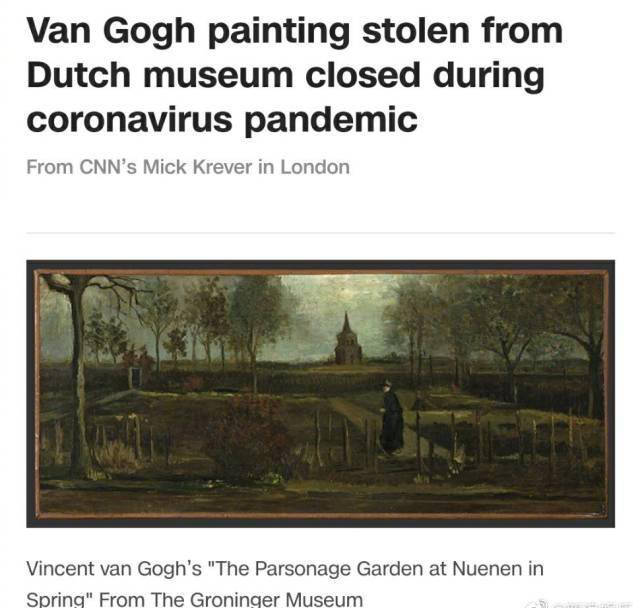 調(diào)查顯示,盜賊在當?shù)貢r間30日凌晨3點15分破門而入,當警察聽到報警器響趕到現(xiàn)場時,盜賊已經(jīng)逃離,沒有其他畫作失竊。受荷蘭新冠肺炎疫情的影響,辛格博物館此前一直處于關閉狀態(tài),盜賊正是瞄準了這個時機進行偷盜。警方申明,《春天花園》這副畫作已被添加到國際刑警組織的“國際失竊藝術品”清單中,警方正在全力調(diào)查。